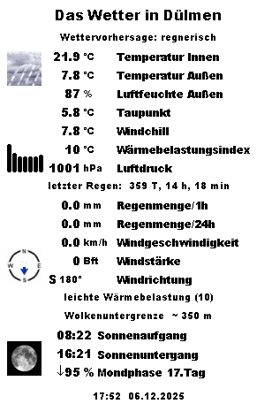 - Feuchte - Luftdruck - Windstärke u. Geschwindigk. - Regen - min u. max